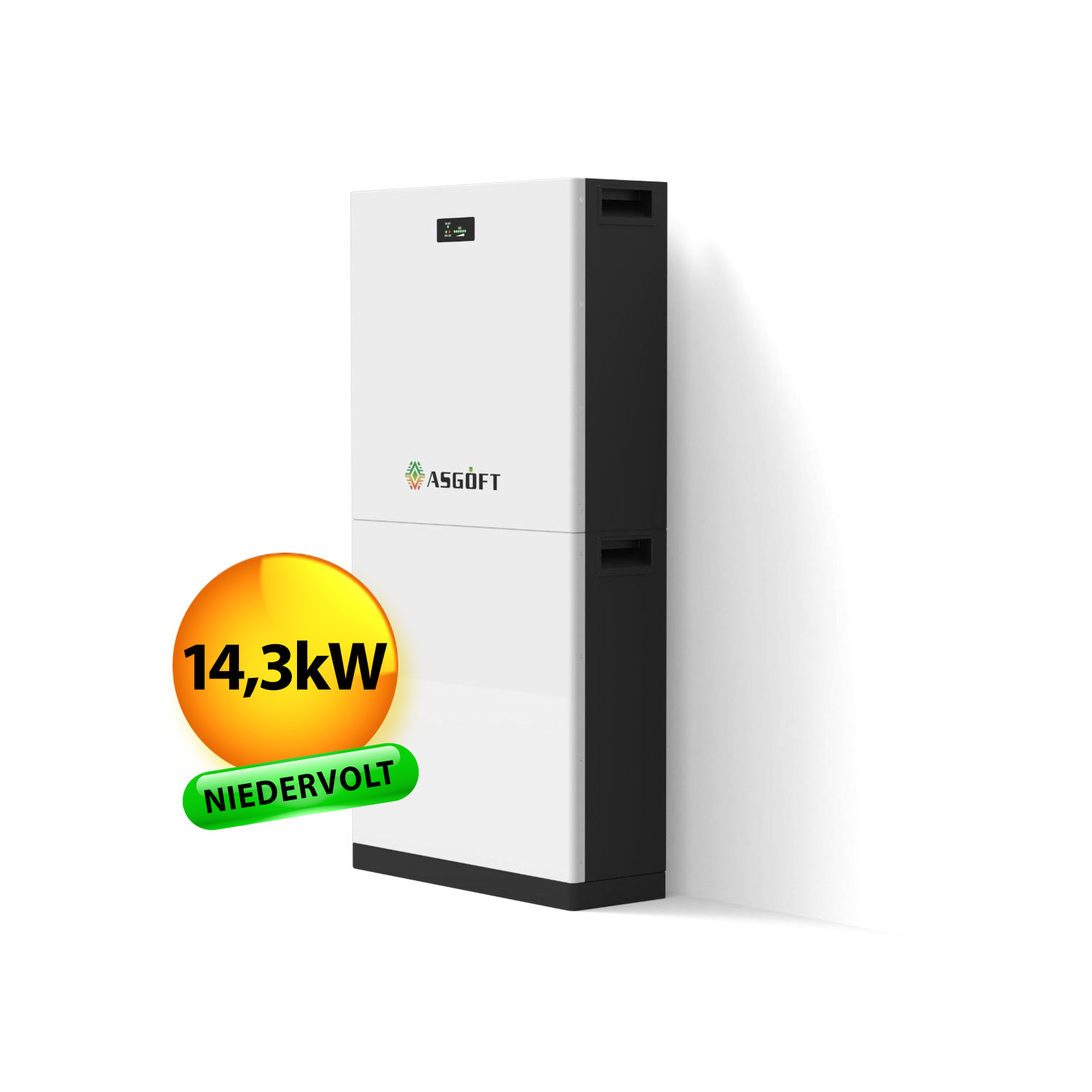 Nutzen Sie die Energie des ASGOFT 14,33 kWh Batteriespeichers, um das volle Potenzial der Solarenergie in Ihrem Haushalt auszuschöpfen.